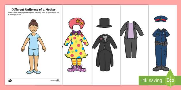 Different Uniforms Of A Mother Paper Doll Activity