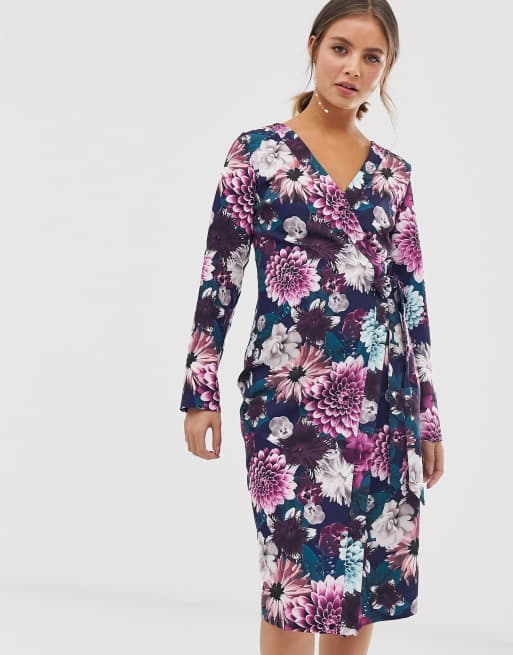 Paper Dolls Wrap Midi Dress With Tie Waist In Floral Print Asos