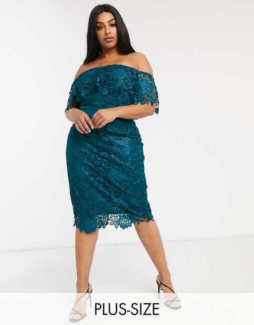 Paper Dolls Plus Bardot Lace Midi Dress In Vivid Teal Asos