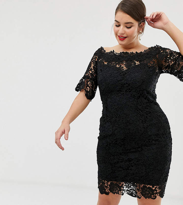 Paper Dolls Plus Bardot Pencil Dress With Lace Trim Dresses