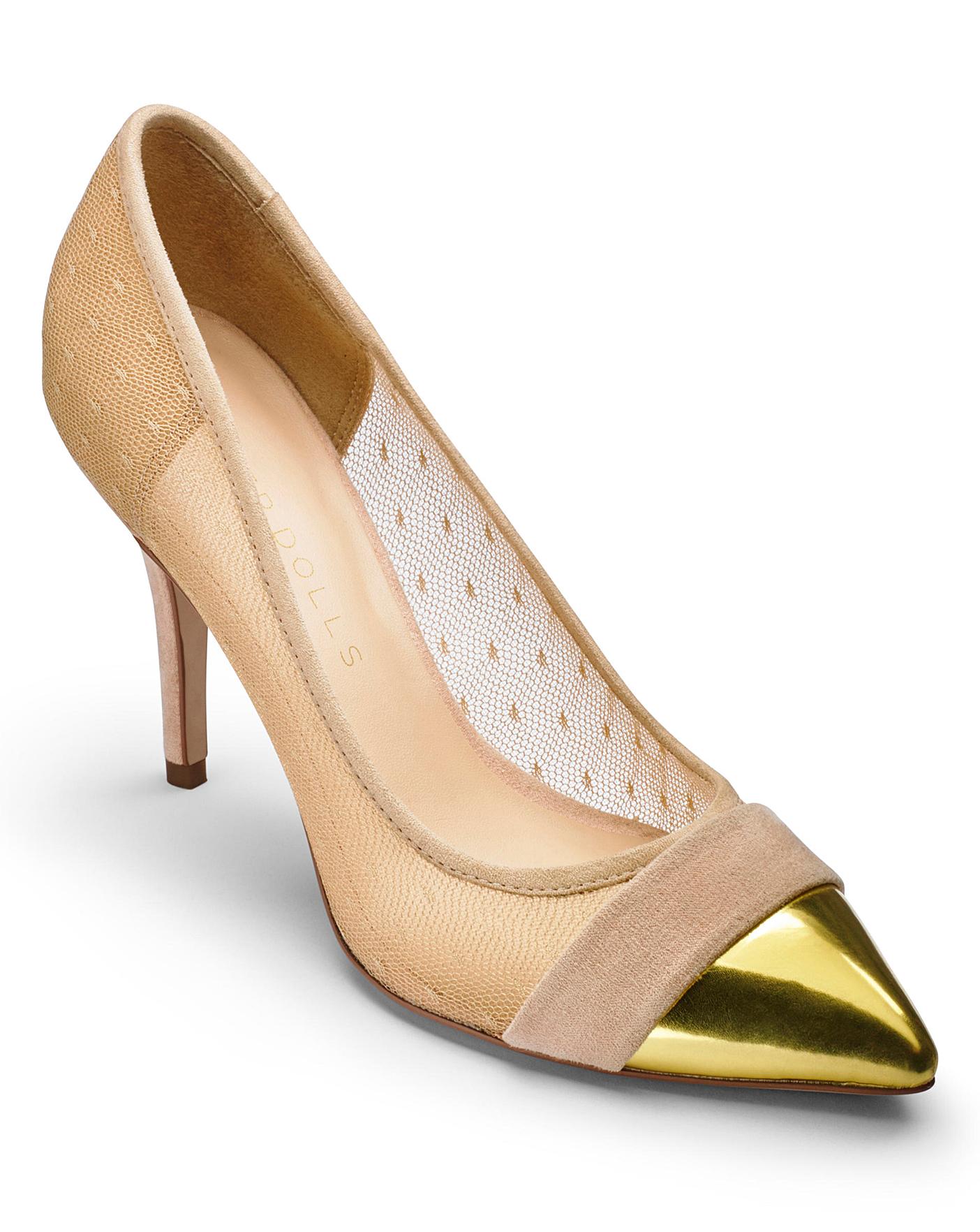 Paper Dolls Footwear Orla Nude Sheer Gold Toe Cap Court Shoes Size
